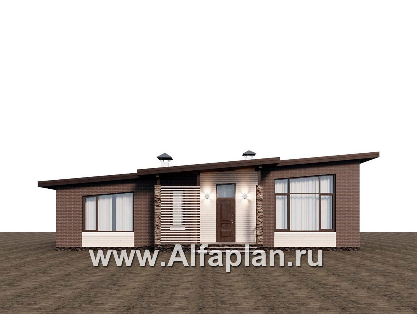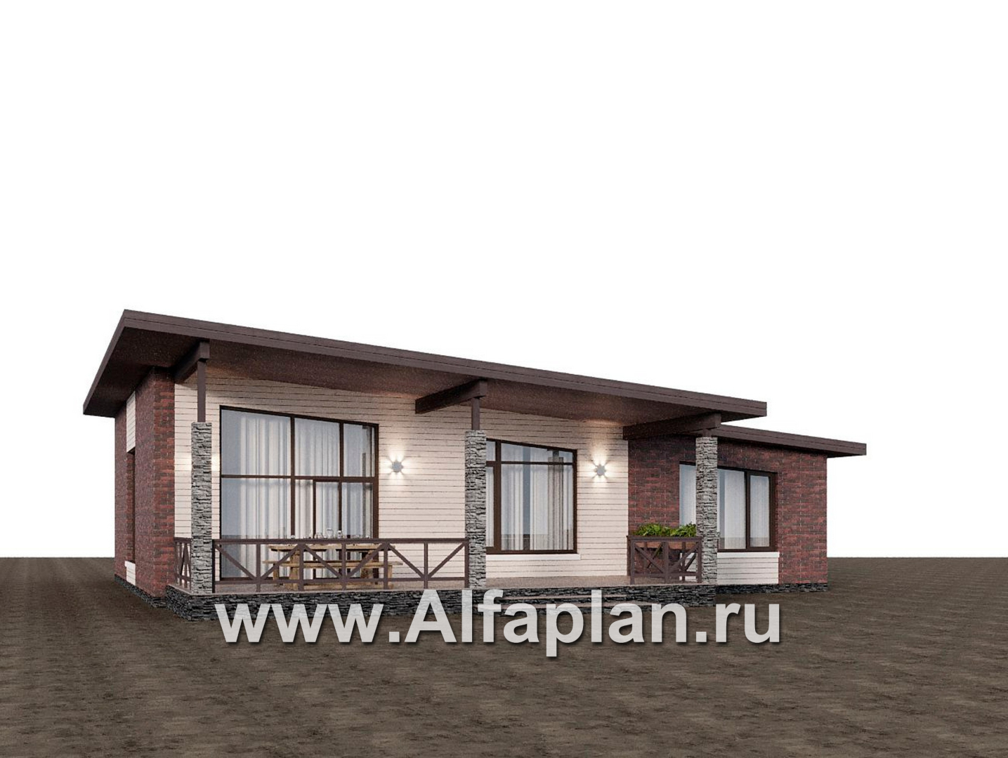 «Стрелец» -проект современного одноэтажного дома с террасой со стороны входа, с односкатной крышей