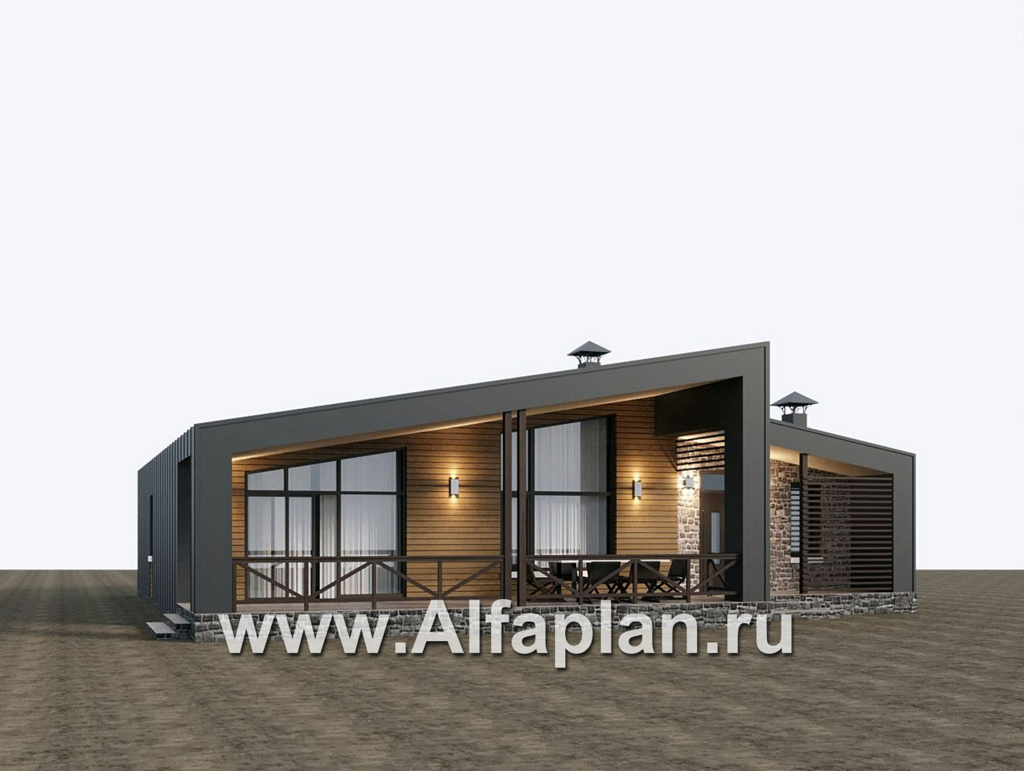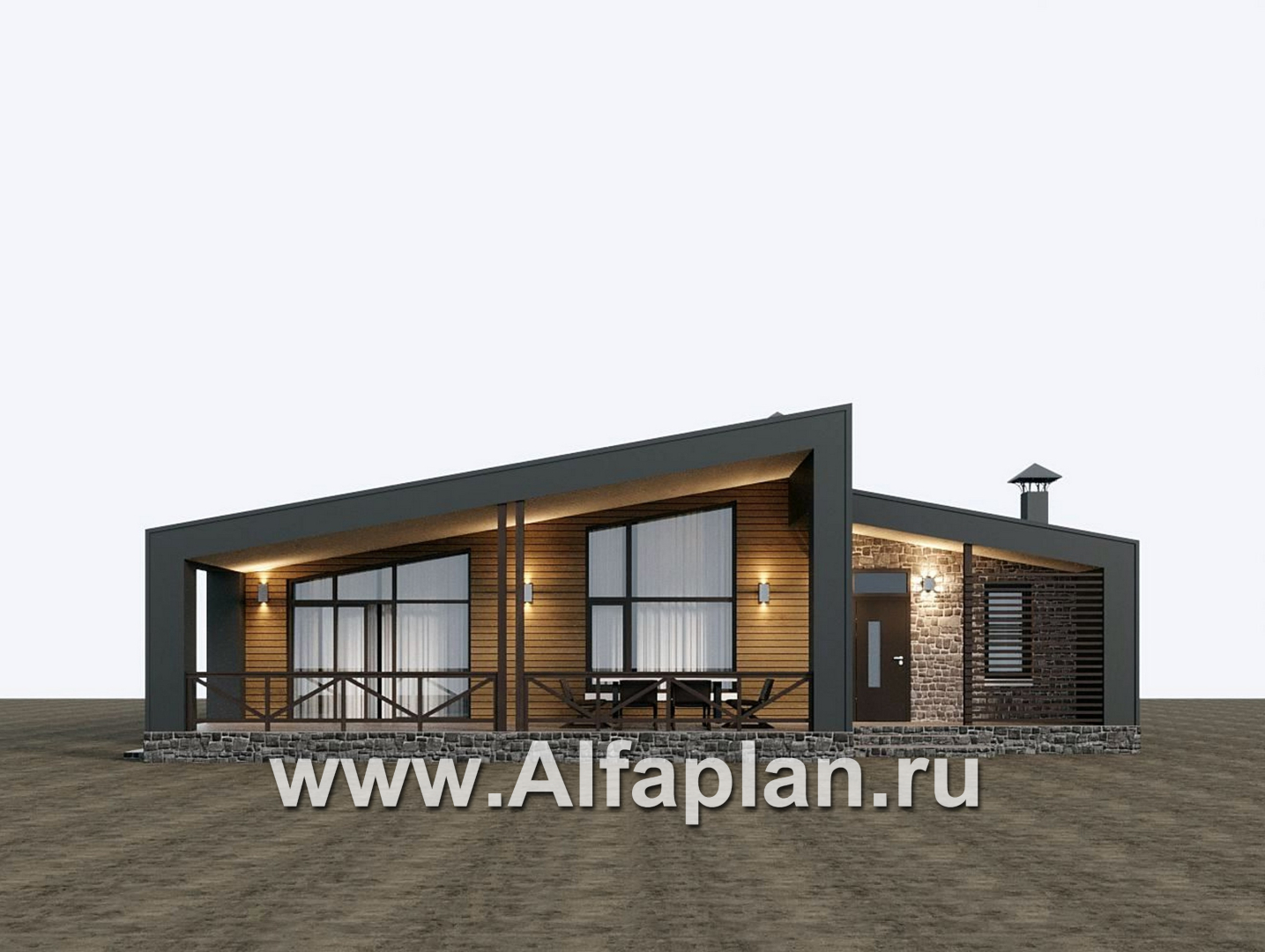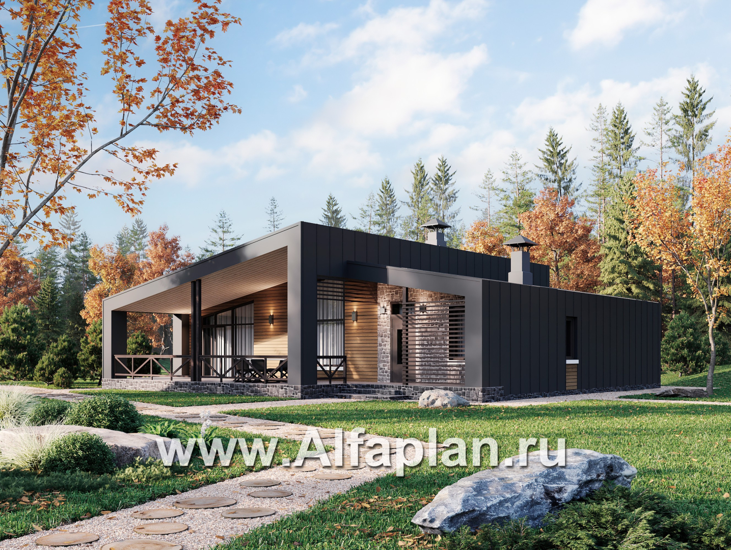 «Аметист» - проект одноэтажного дома, с террасой со стороны входа, 3 спальни, в стиле барн