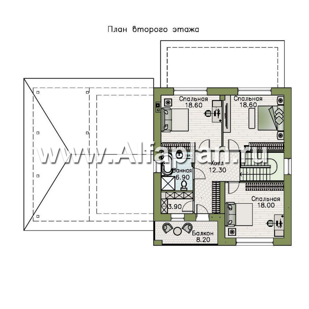 «Селигер» - проект двухэтажного дома из газобетона, с гаражом на 2 авто, фасады из штукатурки