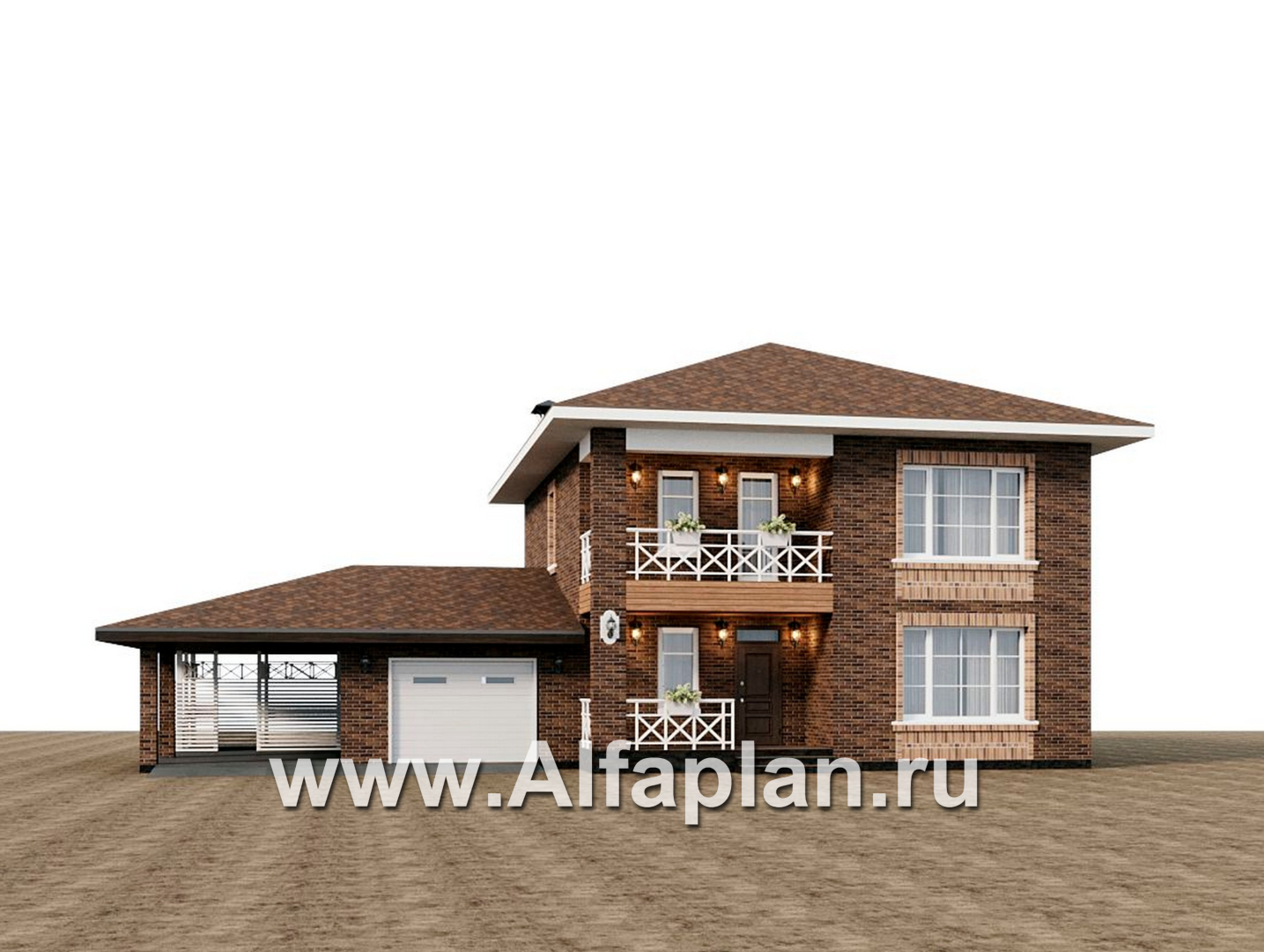 «Сайма» - проект двухэтажного дома из кирпичей, с террасой, в баварском стиле, с гаражом