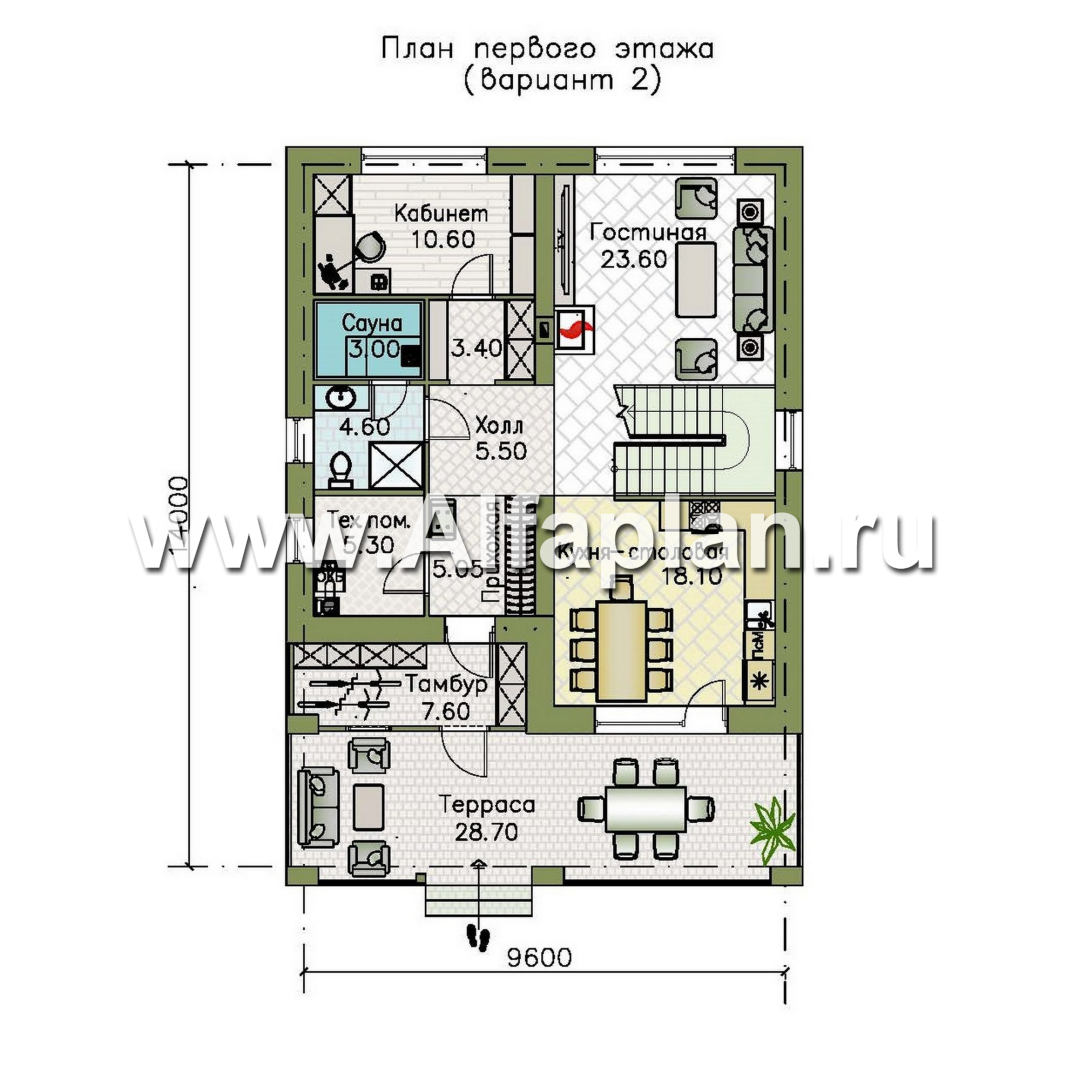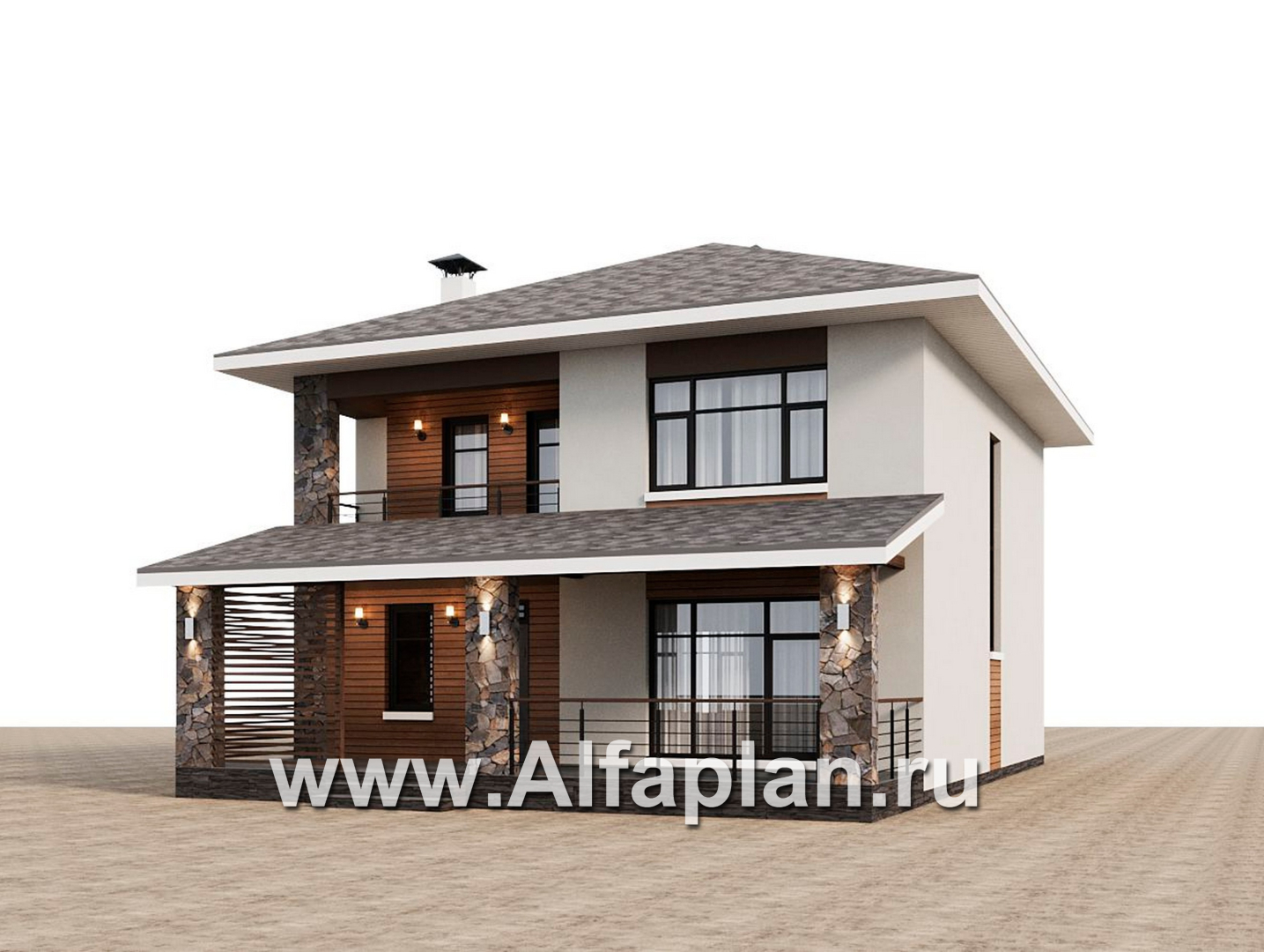 945A-S «Отрадное» - проект двухэтажного дома из газобетона, с террасой на главном фасаде
