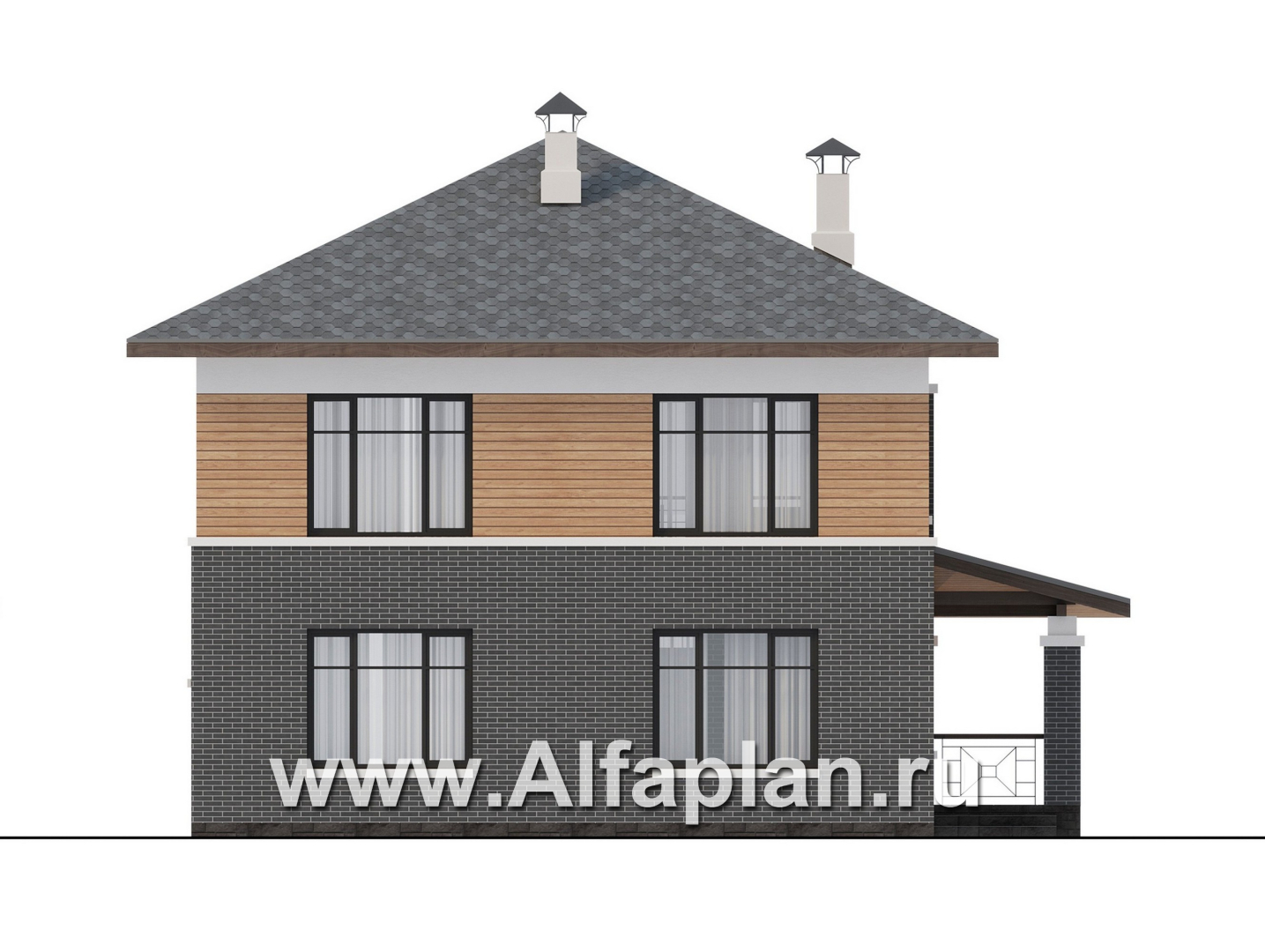 945B-S «Отрадное» - проект двухэтажного дома из газобетона, в стиле Райта, с террасой на главном фасаде