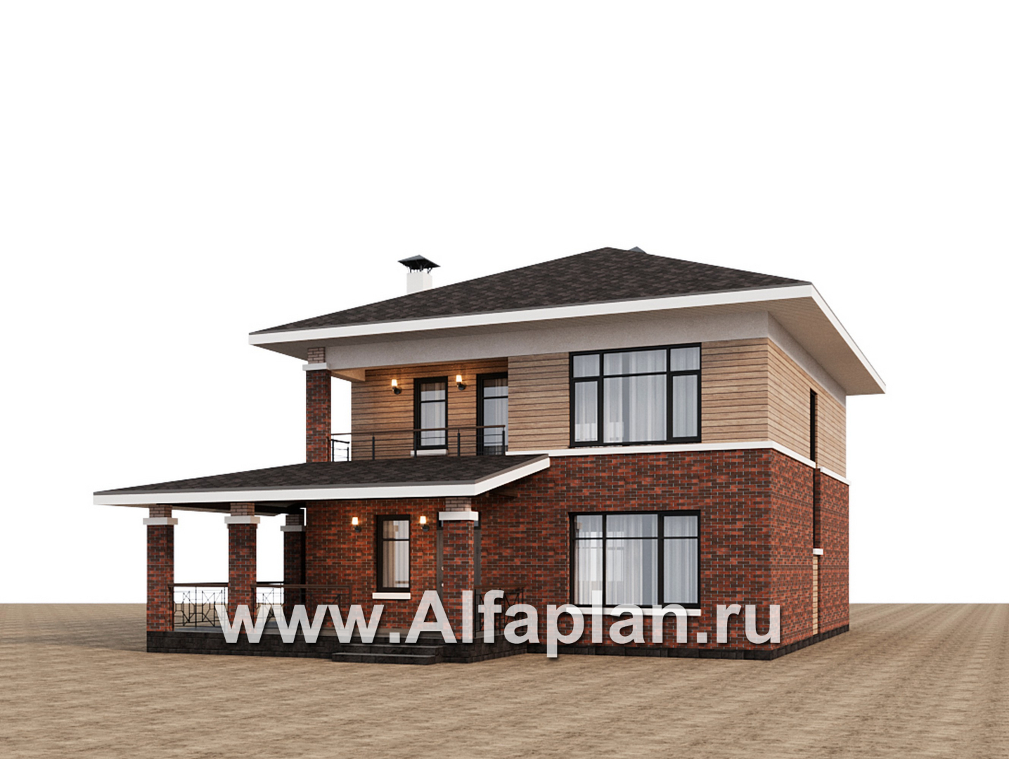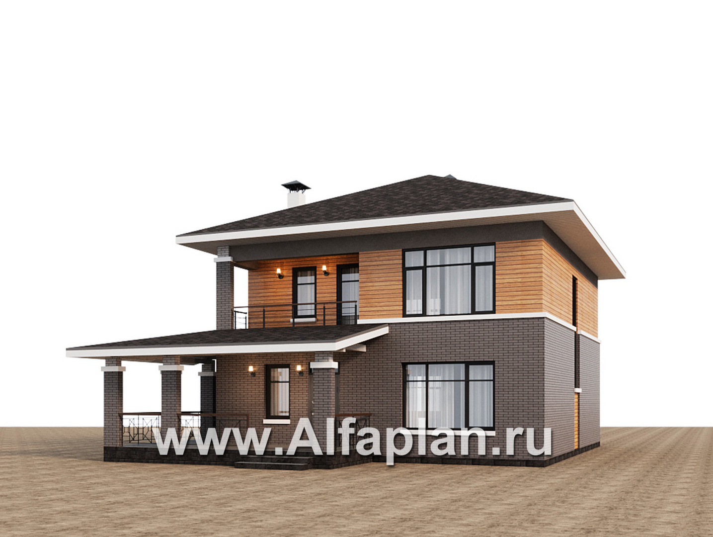«Отрадное» - проект двухэтажного дома из газобетона, в стиле Райта, с террасой на главном фасаде