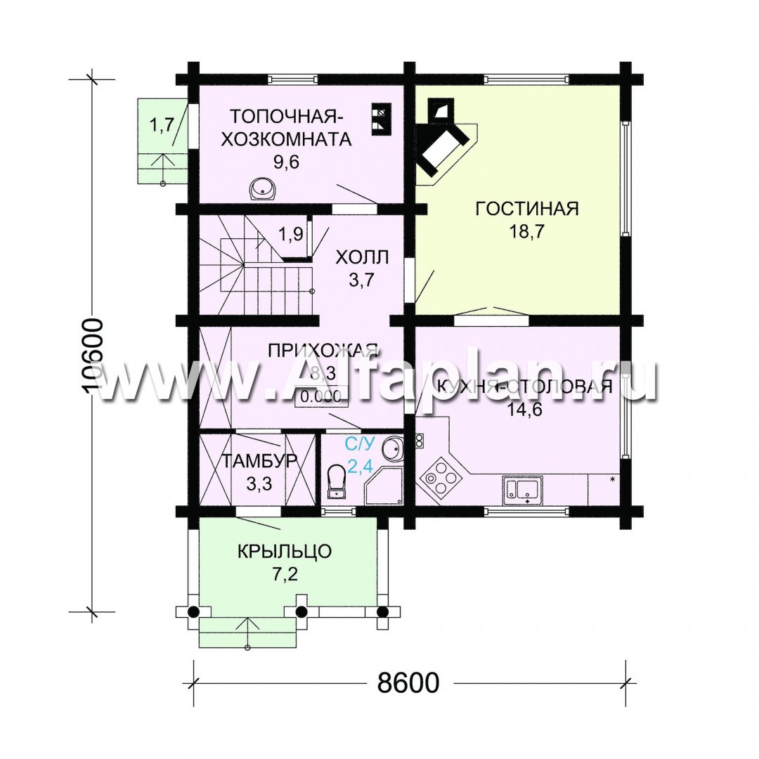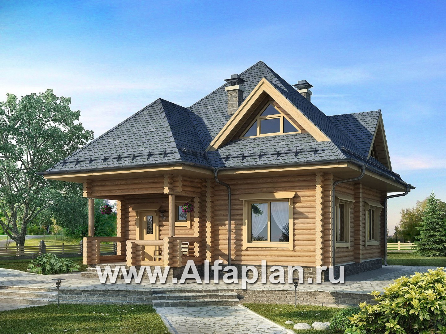 G74 Проект деревянного дома с мансардой, из бревен, 3 спальни