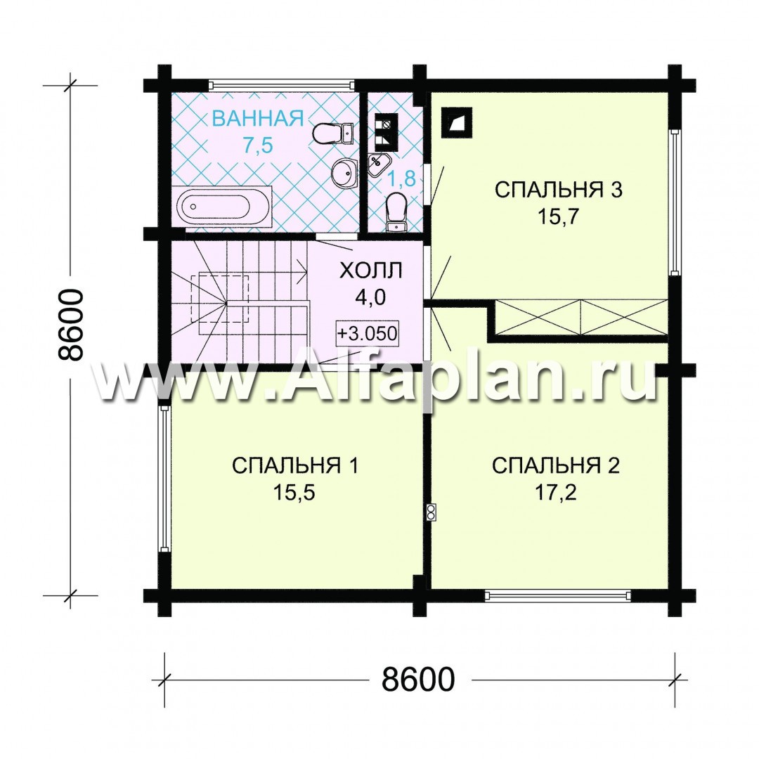 Проект деревянного дома с мансардой, из бревен, 3 спальни