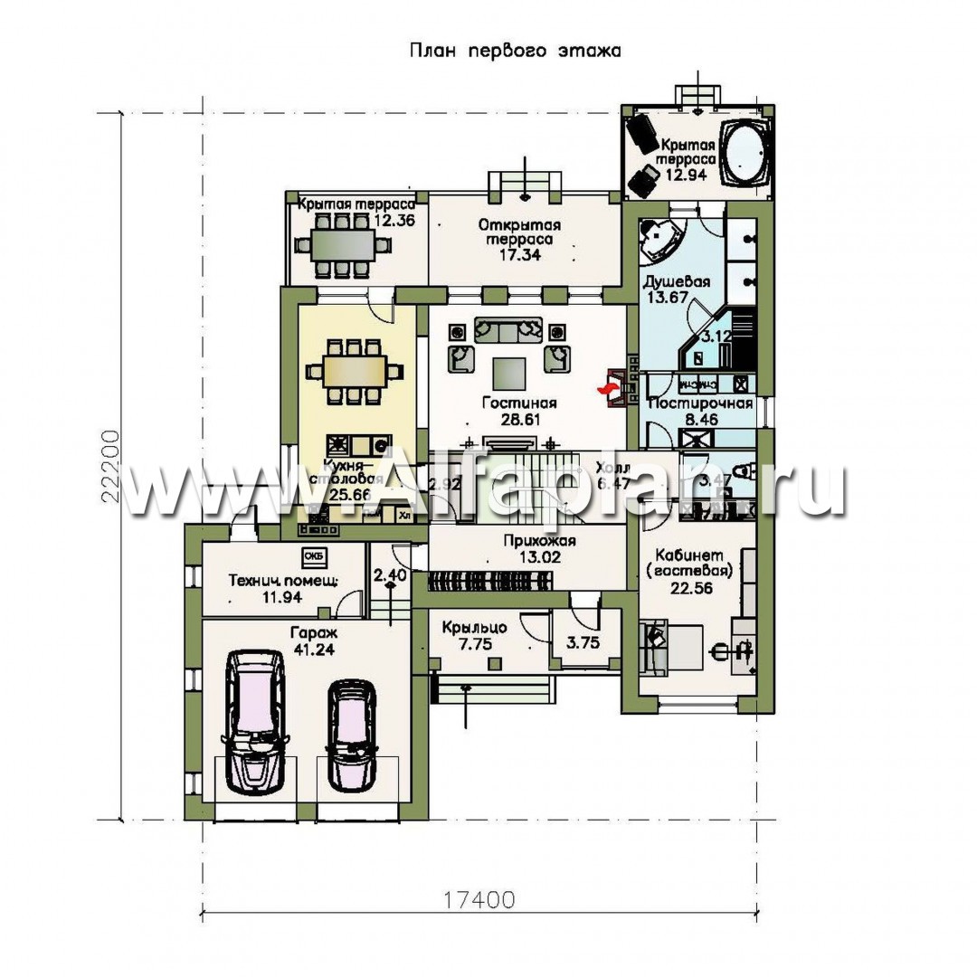 «Палането» - проект двухэтажного дома, вилла с двусветной гостиной и с террасой, гараж на 2 авто - технические характеристики