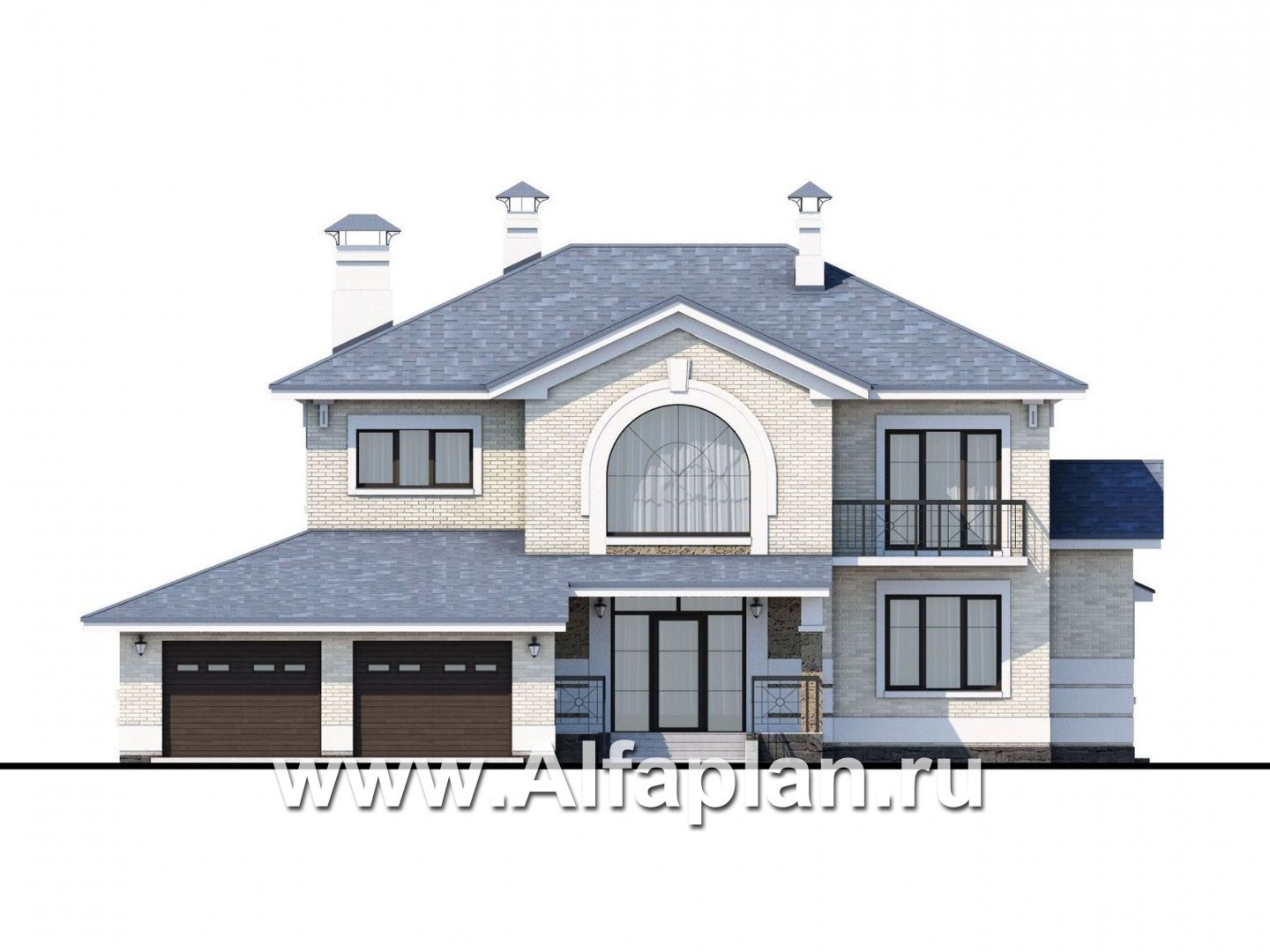 318B-S «Аутентик» - проект двухэтажного дома, с двусветным холлом и верандой, арочное окно, гараж на 2 авто, в стиле эклектика