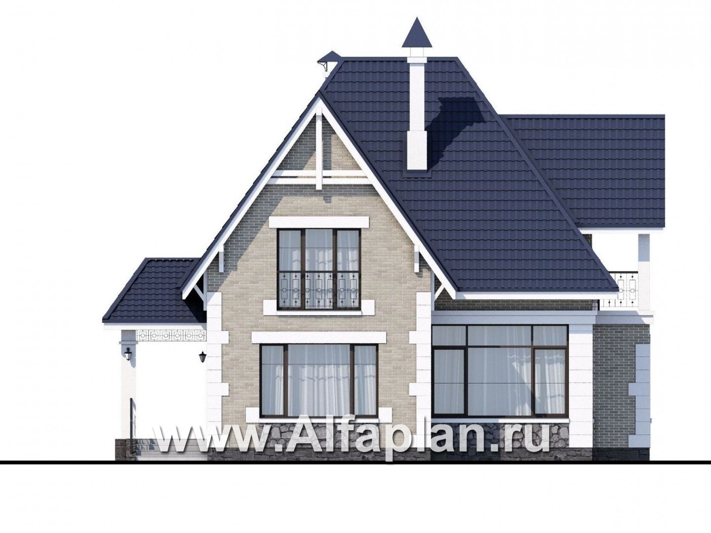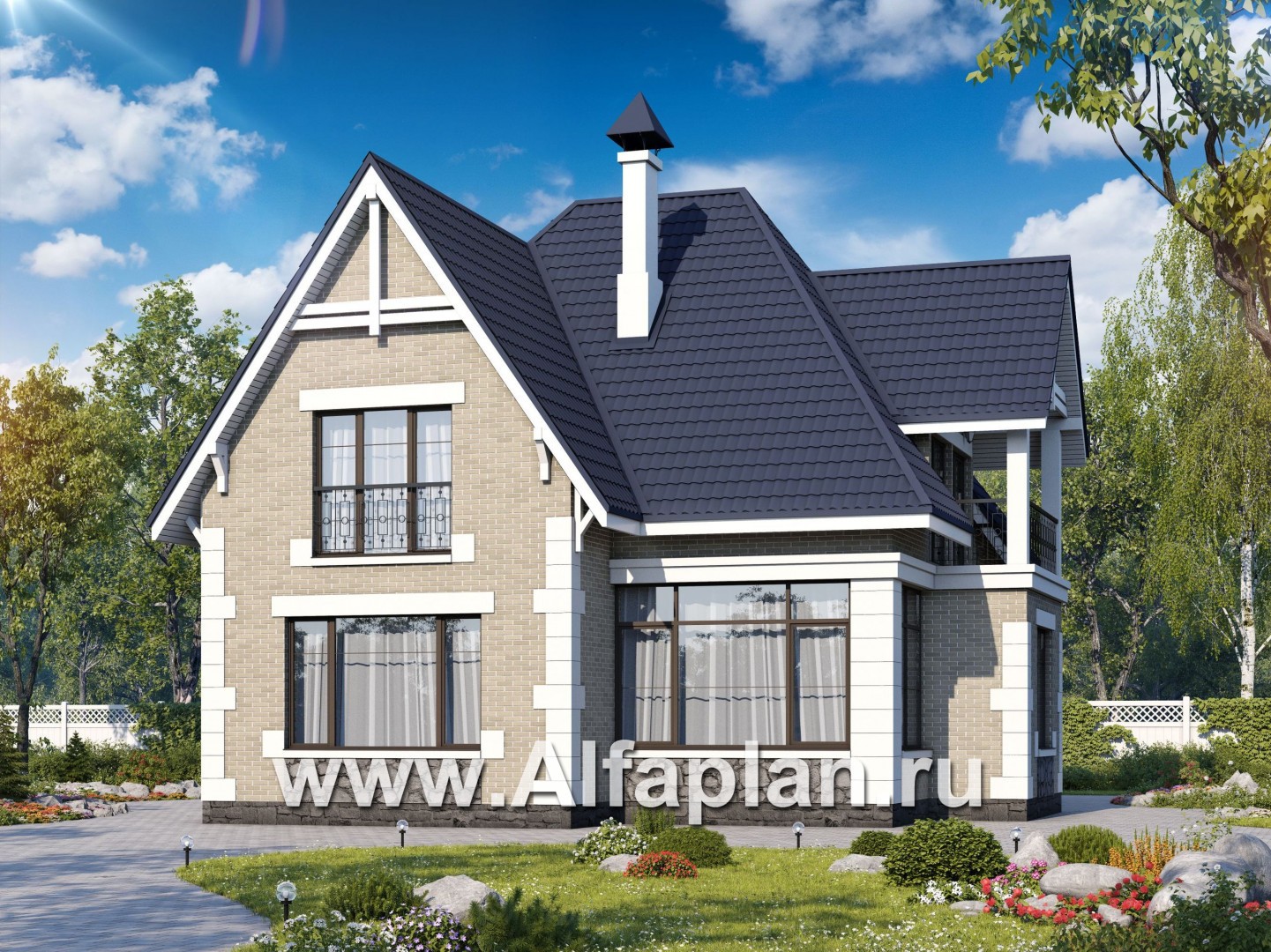 Компактный и удобный коттедж, предусматривающий мансардную крышу и крытое крылечко с резными перилами, напоминает сказочный домик. Подобное здание обязательно "найдет свое место" на зеленом участке у пруда, среди цветов и деревьев.