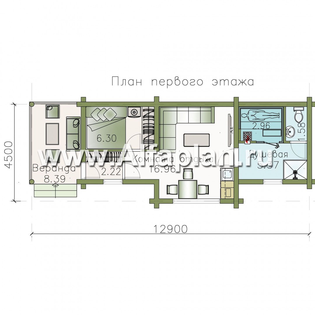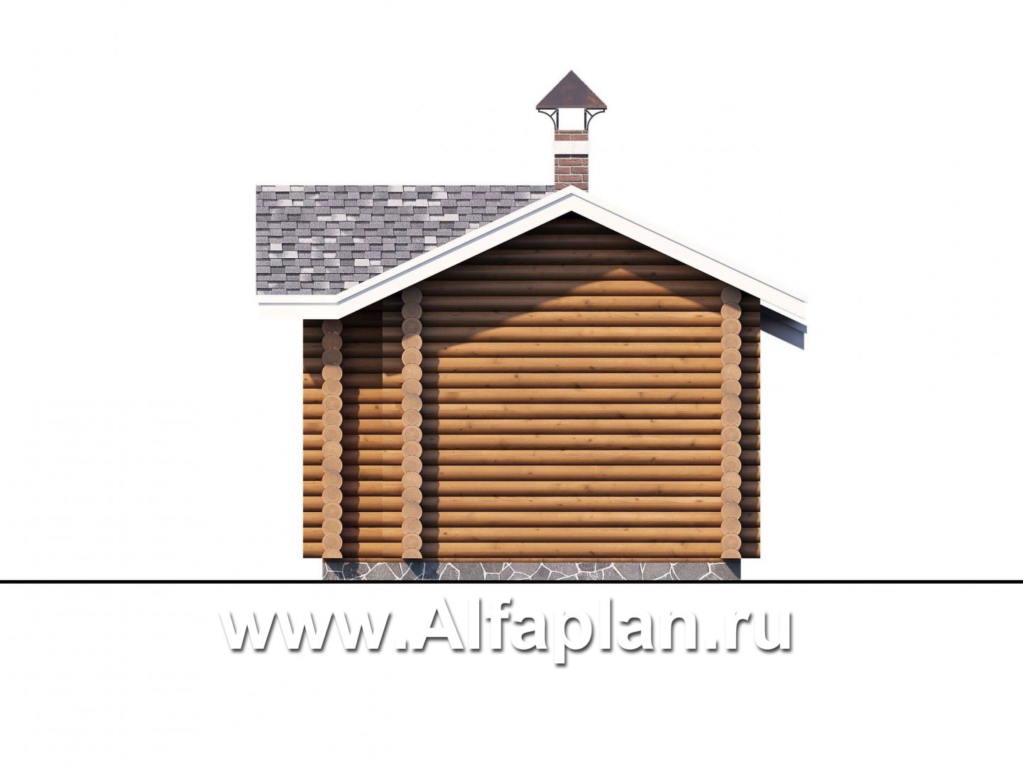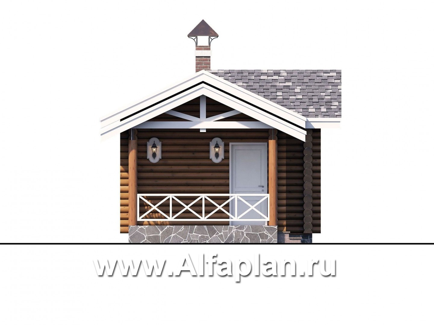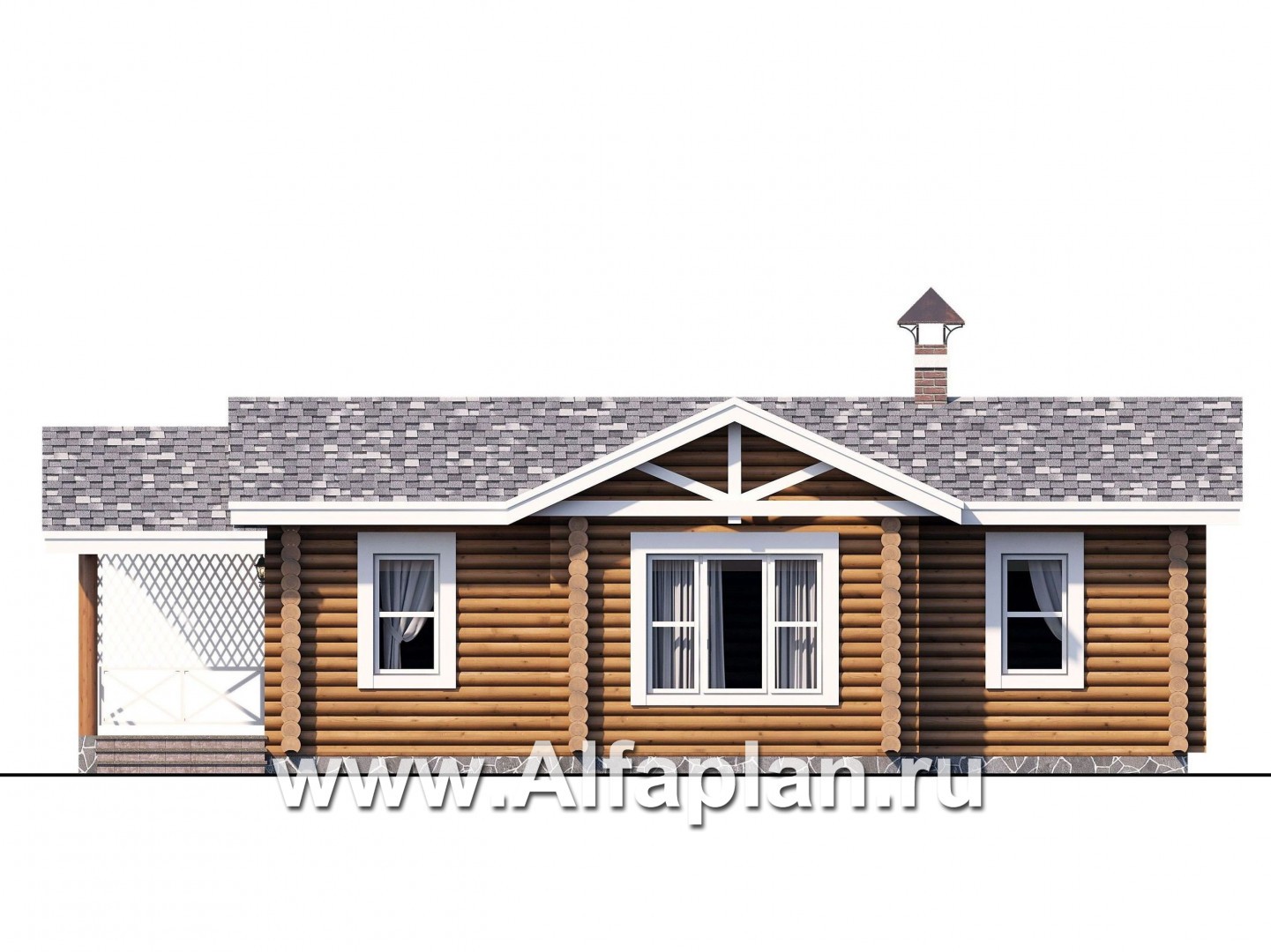 806C-S Проект бани, из дерева, из бревен, с террасой, с гостевой спальней, вдоль границы участка