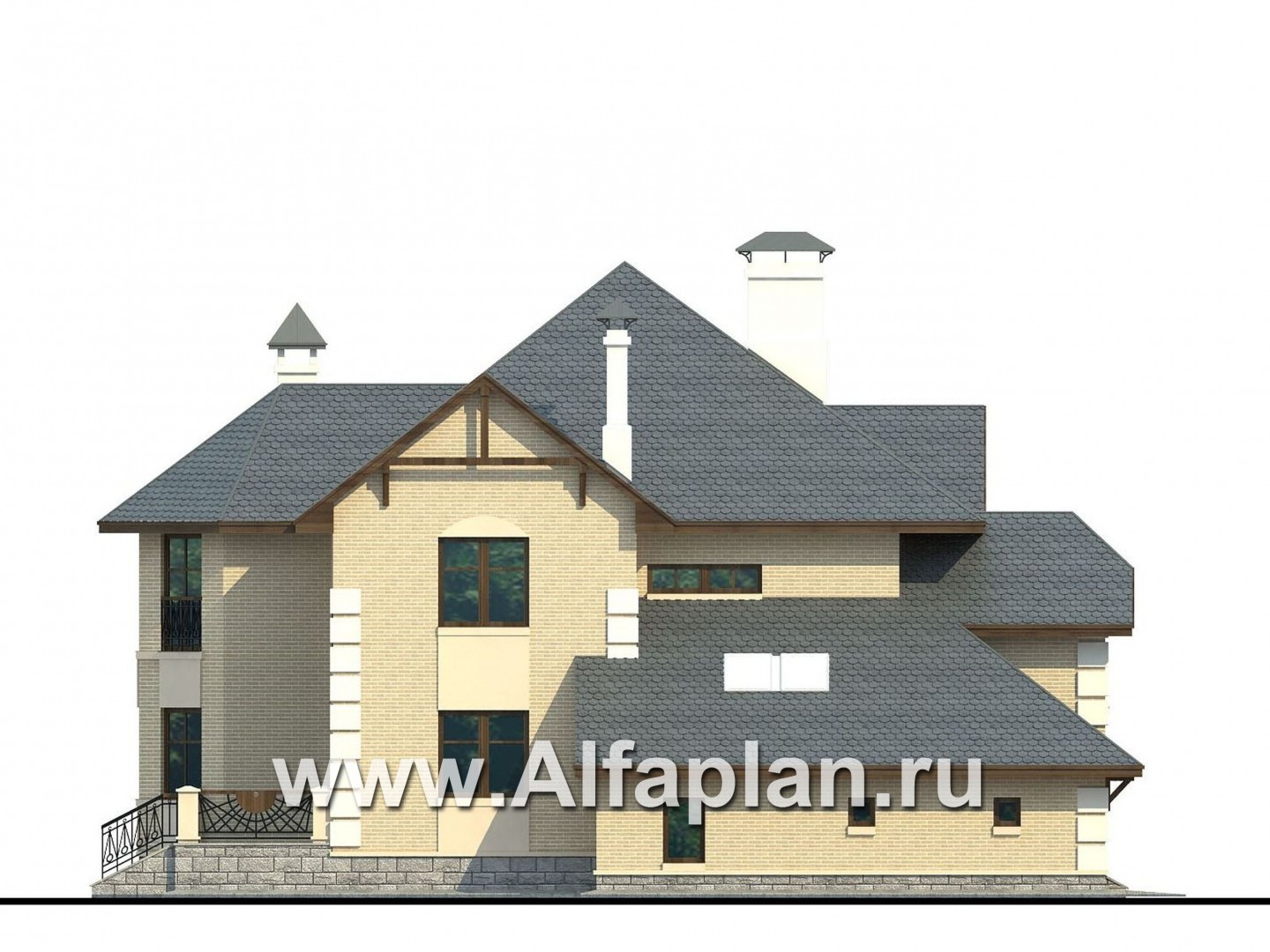 Фасад дома выполнен в стиле Петровского барокко, с белой рустовкой по углам здания. Особенно обращает на себя внимание перепад высот этажей, вызванный наличием гаража. Это создает гармоничную и своеобразную ступенчатую структуру фасада. Кабинет снабжен стеклянным эркером.