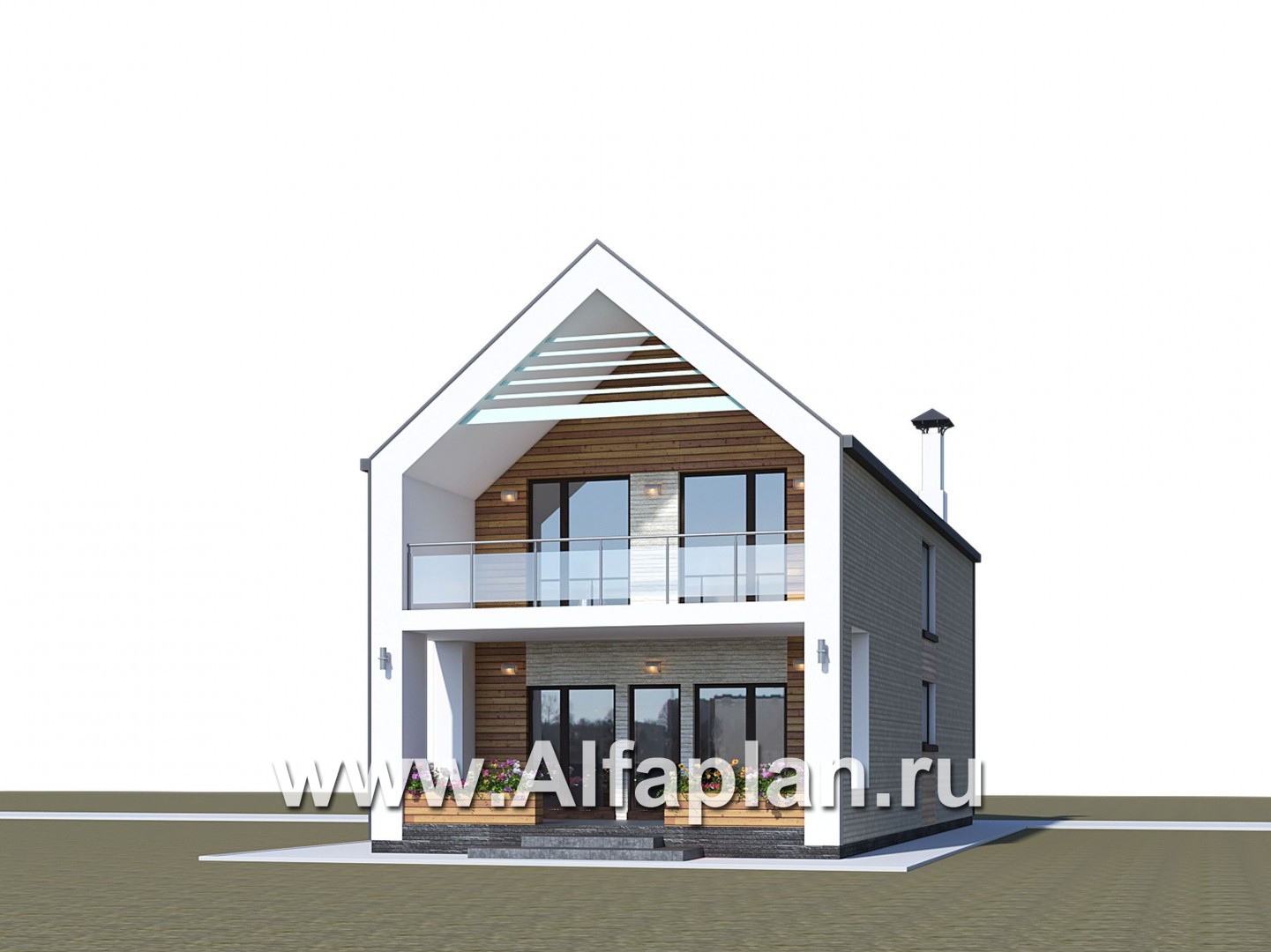 «Барн» - проект дома с мансардой, современный стиль барнхаус, с сауной, с террасой к дому и с балконом