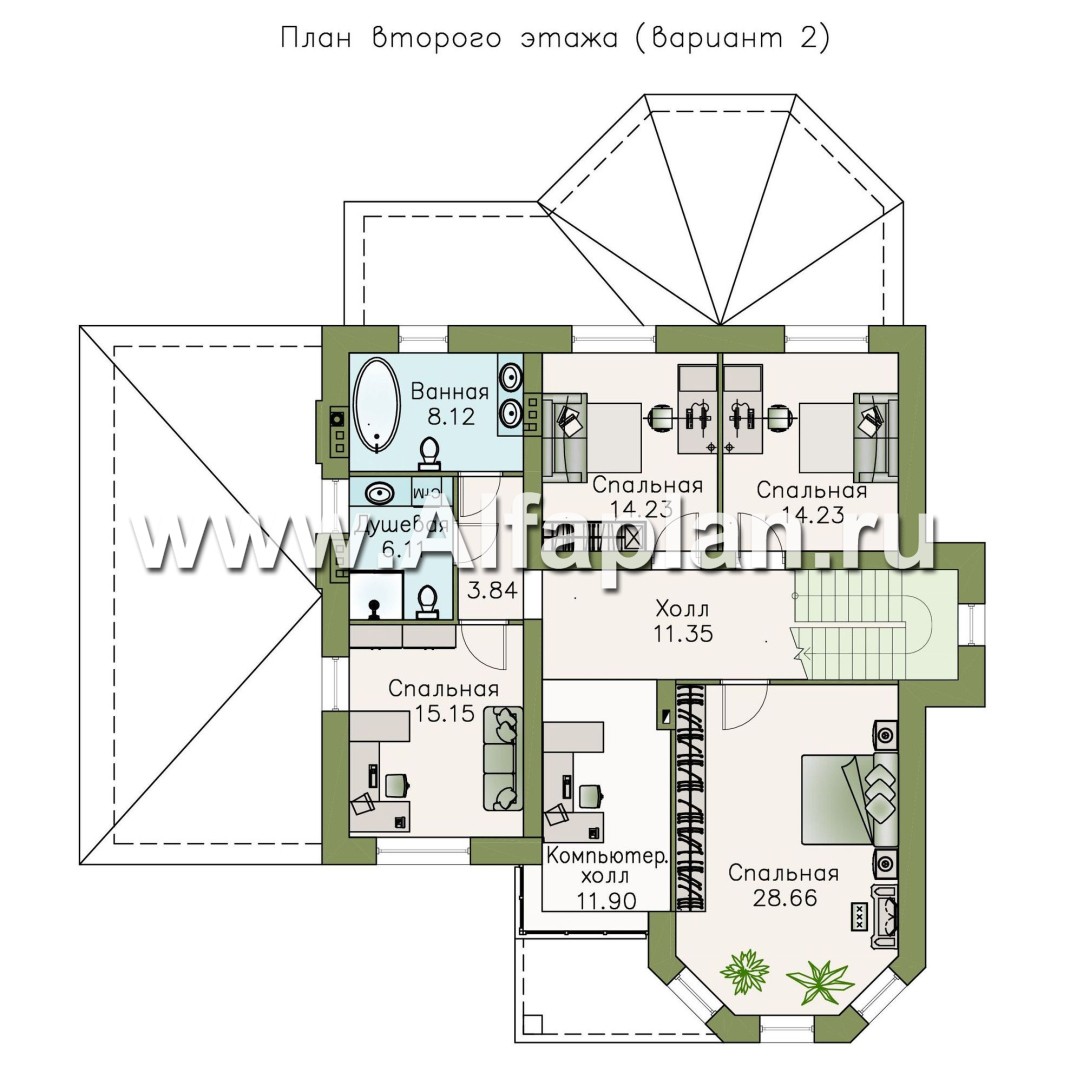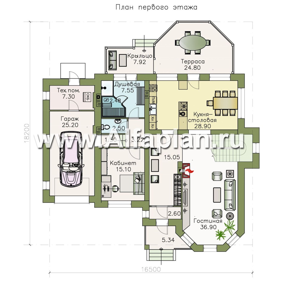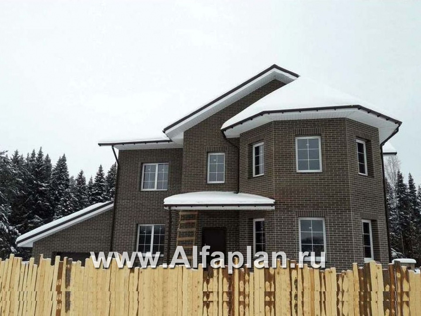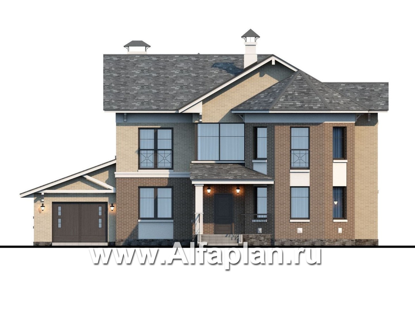 «Clever» - проект двухэтажного дома, планировка с эркером и кабинетом на 1 эт, с террасой и с гаражом