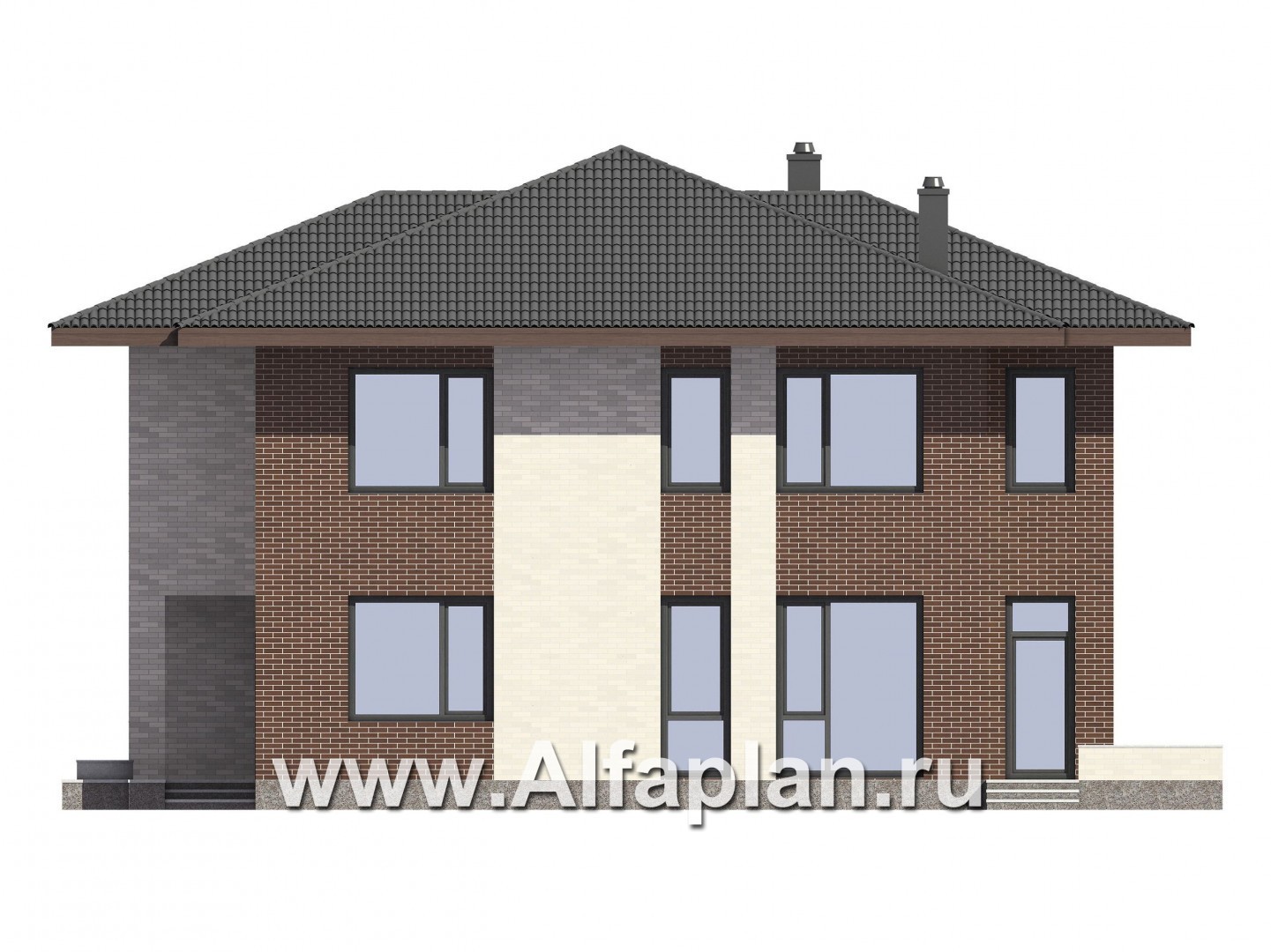 Проект двухэтажного дома, планировка с кабинетом, с террасой, в современном стиле