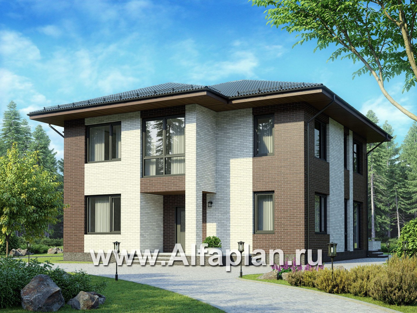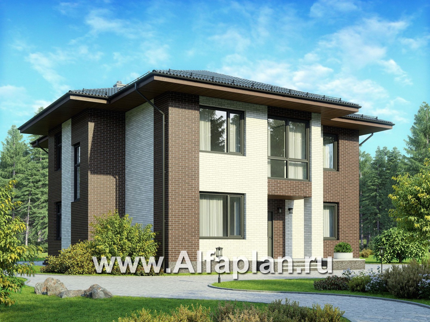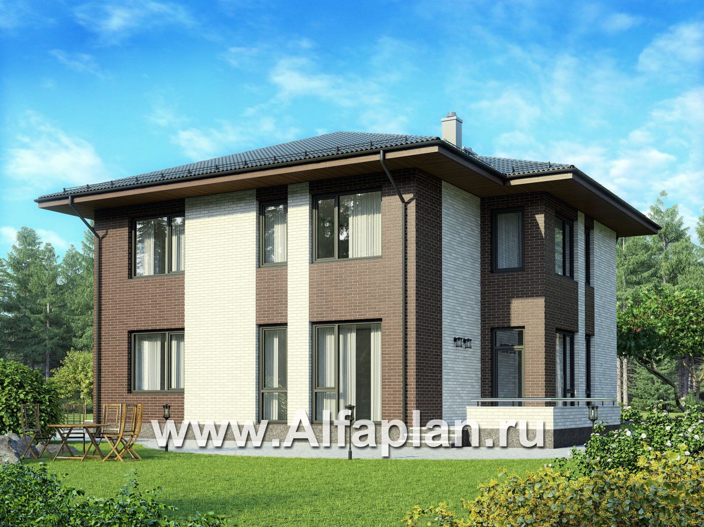 Проект двухэтажного дома, планировка с кабинетом, с террасой, в современном стиле - технические характеристики