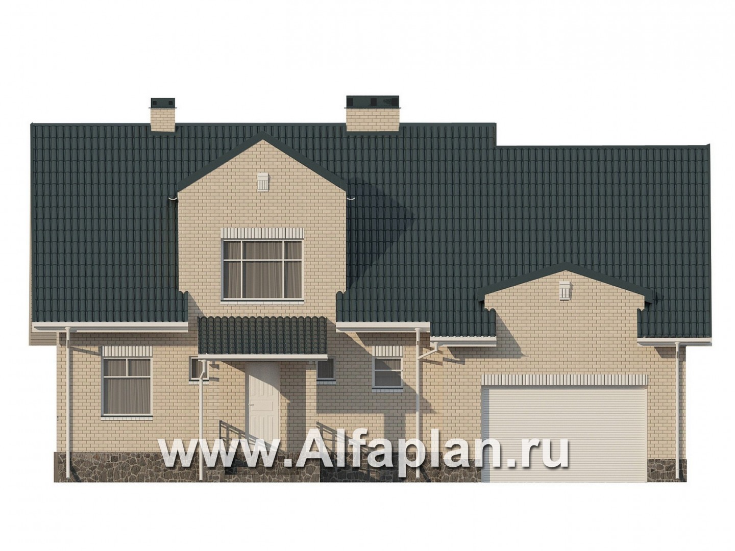 Проект дома с мансардой, из газобетона, с гаражом на 2 авто, с бассейном и сауной в цокольном этаже