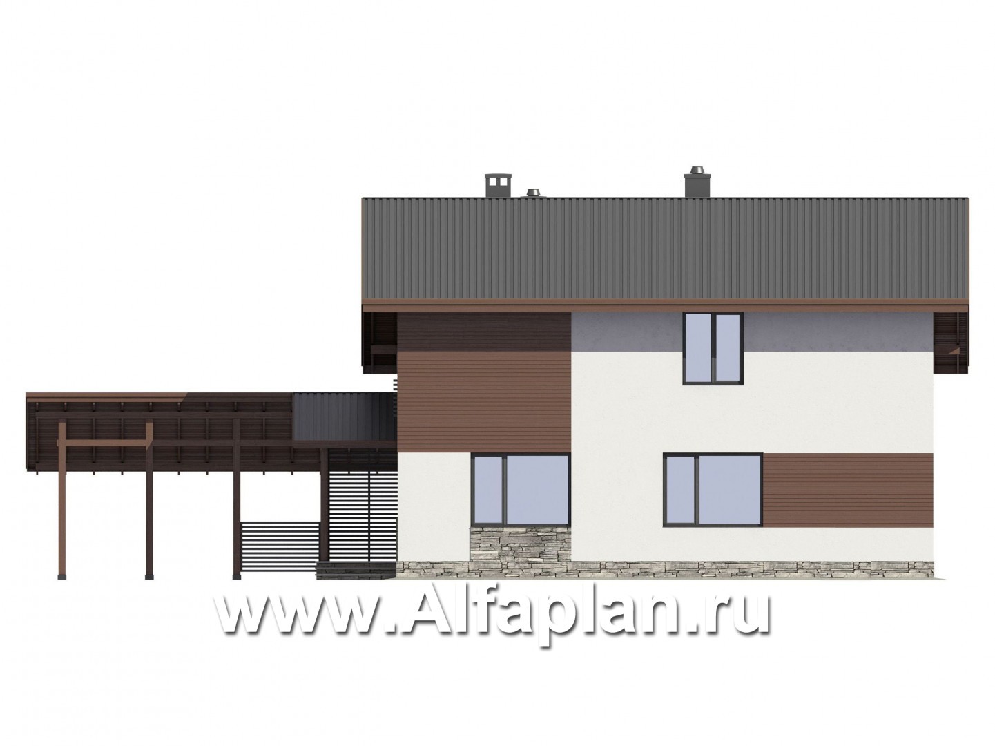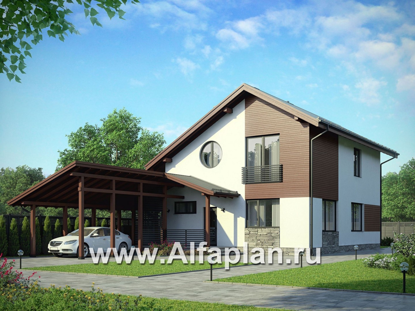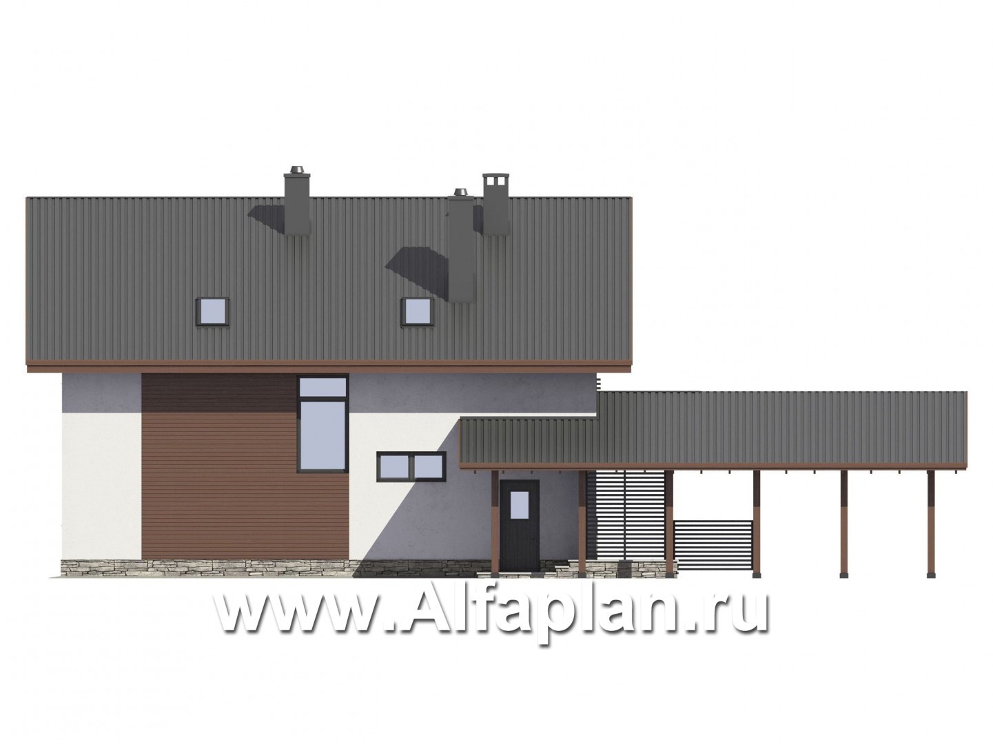 Проект двухэтажного дома, с навесом на 1 авто, в скандинавском стиле