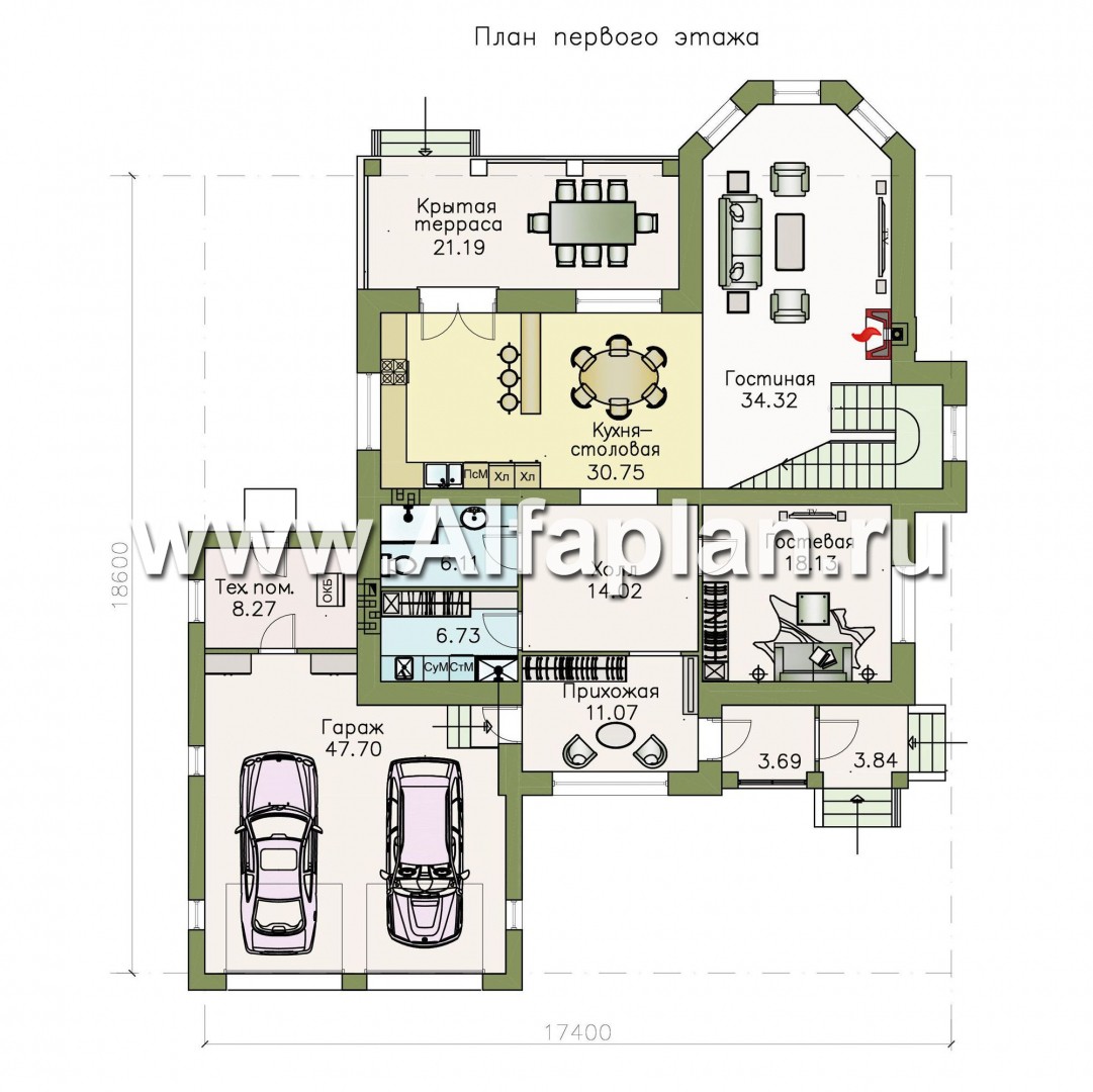 517B «Затерянный рай» - проект двухэтажного дома, с террасой, с гаражом на 2 авто, удобная планировка, в стиле эклектика