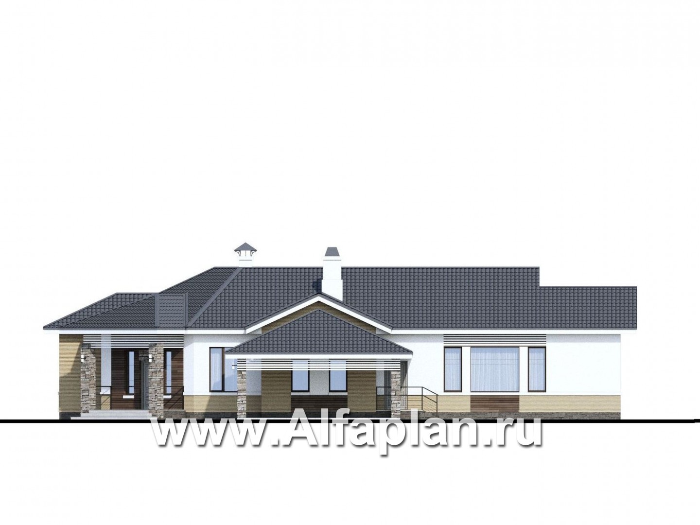 350A «Альтер Эго» - проект эксклюзивного одноэтажного дома из кирпича, с террасой, мастер спальня, спортзал